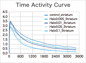 - 各投与量での関心領域の放射能集積が用量依存的に低下